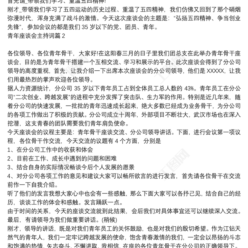 工圖網(wǎng)提供青年座談會(huì)主持詞12篇供會(huì)員免費(fèi)下載。更多精彩黨課PPT素材,盡在工圖網(wǎng)。