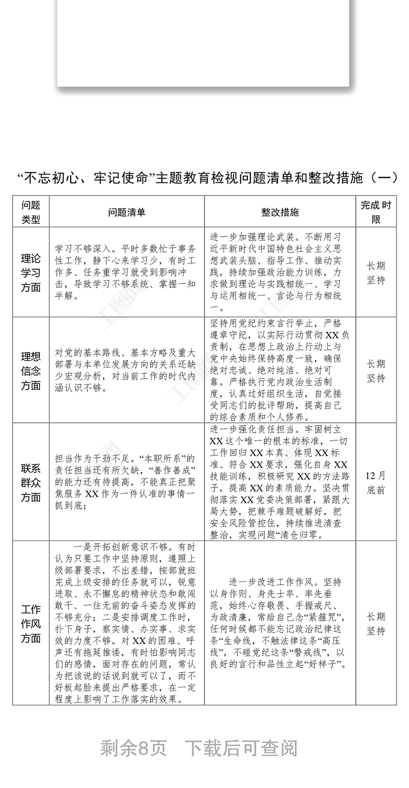 工圖網(wǎng)提供不忘初心牢記使命主題教育檢視問(wèn)題清單和整改措施6篇供會(huì)員免費(fèi)下載。更多精彩黨課PPT素材,盡在工圖網(wǎng)。