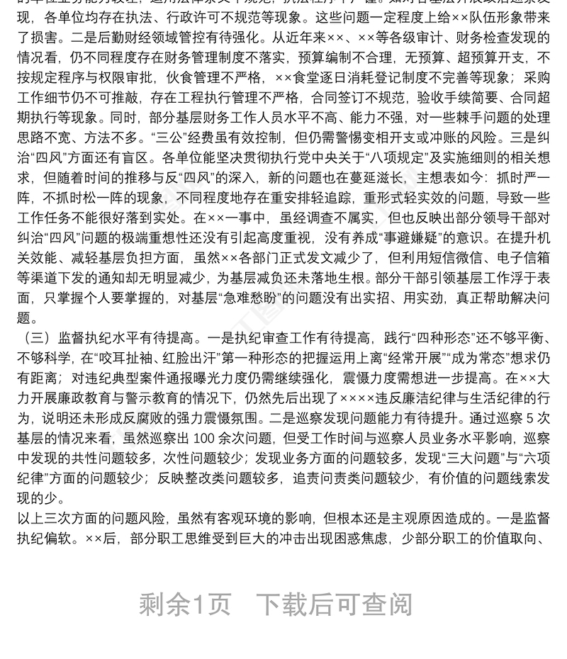 2021黨支部上半年紀(jì)檢監(jiān)察工作總結(jié)2022派駐紀(jì)檢監(jiān)察組工作規(guī)則2022年履行推進(jìn)法治建設(shè)第一責(zé)任人職責(zé)工作情況報(bào)告紀(jì)檢監(jiān)察支部2021年工作總結(jié)2022關(guān)于開展貫徹落實(shí)紀(jì)檢監(jiān)察機(jī)關(guān)處理檢舉控告工作規(guī)則情況自查自糾工作的報(bào)告2022監(jiān)獄紀(jì)檢監(jiān)察工作情況匯報(bào)2022紀(jì)檢監(jiān)察工作存在問題的原因分析2021紀(jì)檢監(jiān)察組監(jiān)督單位黨建工作總結(jié)2023紀(jì)檢監(jiān)察干部教育整頓問題清單2023紀(jì)檢監(jiān)察新時(shí)代中國特色社會(huì)主義思想工作方案2023紀(jì)檢監(jiān)察工作總結(jié)新時(shí)代中國特色社會(huì)主義思想2023紀(jì)檢監(jiān)察干部教育整頓工作方案2023紀(jì)檢監(jiān)察干部教育整頓工作匯報(bào)2023紀(jì)檢監(jiān)察干部教育整頓工作小結(jié)