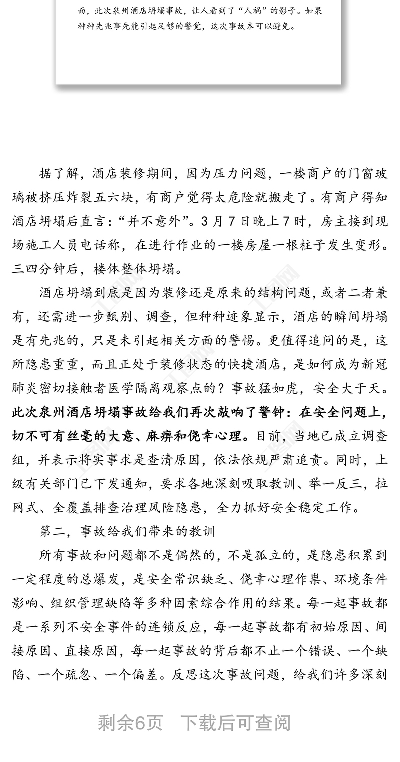 深刻吸取泉州酒店坍塌事故教訓,防微杜漸,警鐘長鳴,領導講話,領導講話,公文范例,領導述職報告,機關公文寫作 Array