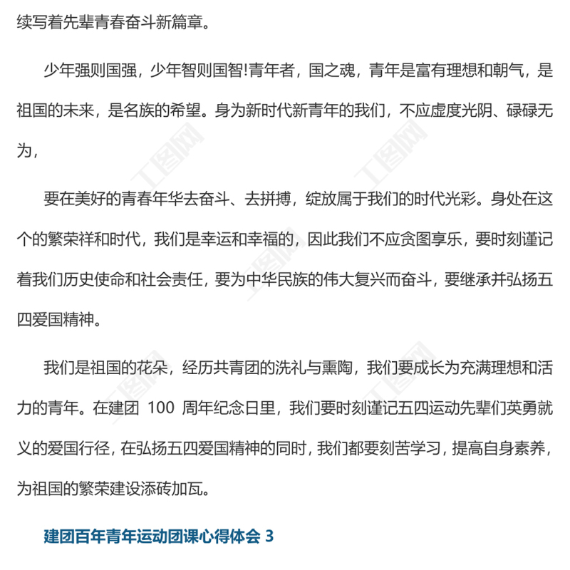 工圖網(wǎng)提供建團百年青年運動團課心得體會供會員免費下載。更多精彩黨課PPT素材,盡在工圖網(wǎng)。