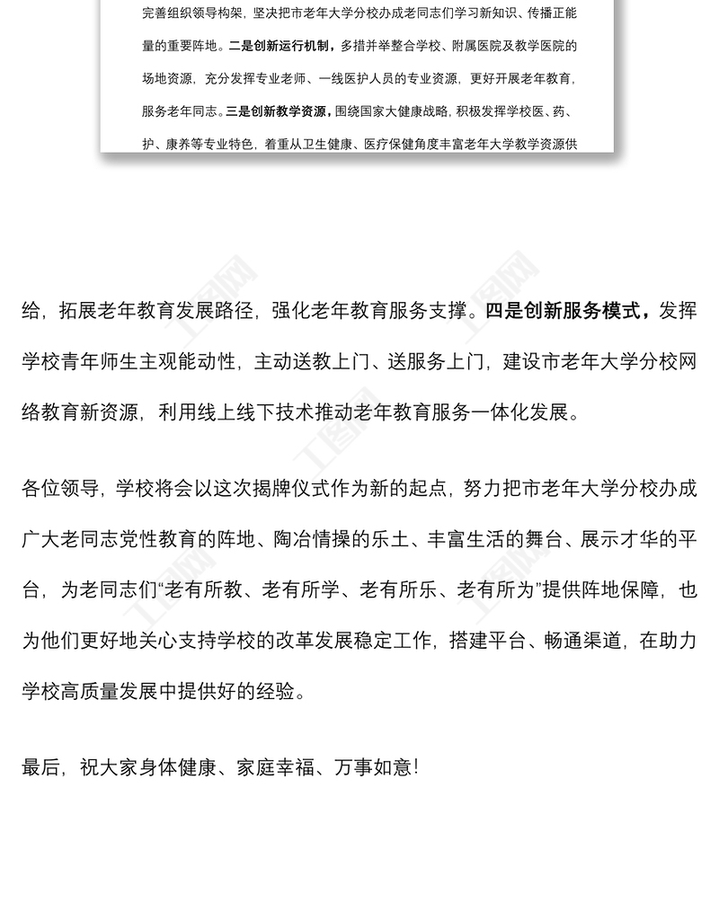工圖網(wǎng)提供在市老年大學(xué)分校揭牌儀式上的致辭供會(huì)員免費(fèi)下載。更多精彩黨課PPT素材,盡在工圖網(wǎng)。