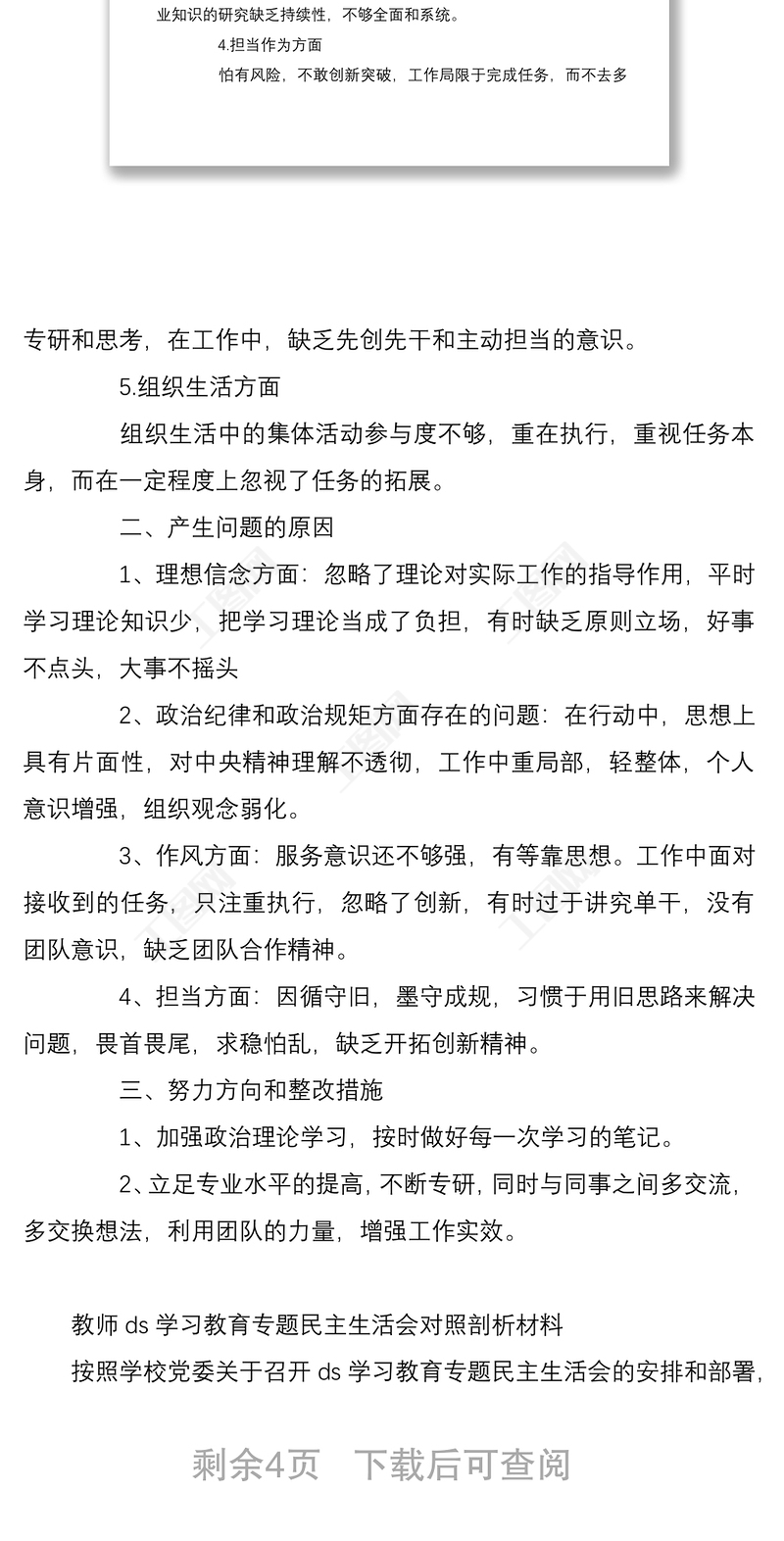 學(xué)DS悟思想專題組織生活會黨員自我剖析材料與教師DS學(xué)習(xí)教育專題民主生活會對照剖析材料