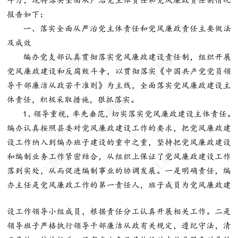2020年度落實(shí)全面從嚴(yán)治黨主體責(zé)任和黨風(fēng)廉政責(zé)任制情況2020年度落實(shí)全面從嚴(yán)治黨主體責(zé)任和黨風(fēng)廉政責(zé)任制情況,全面從嚴(yán)治黨,公文 Array