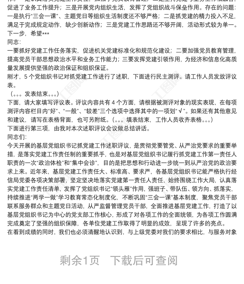 基層黨組織書記抓黨建工作述職評議會議主持詞與點評發(fā)言 Array
