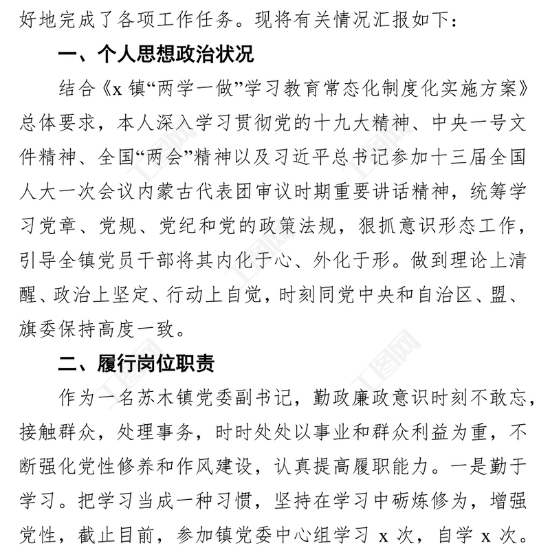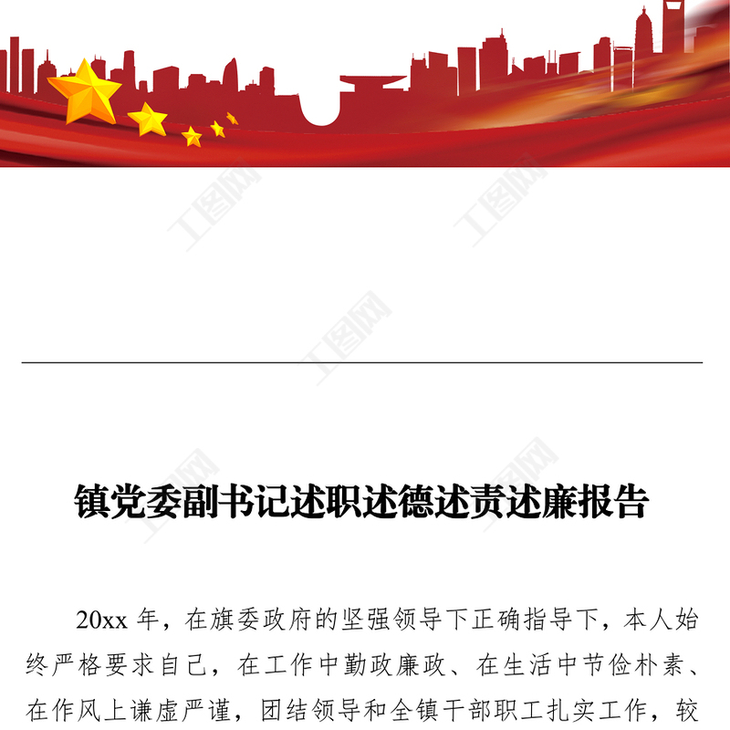 工圖網(wǎng)提供鎮(zhèn)黨委副書記述職述德述責(zé)述廉報告供會員免費(fèi)下載。更多精彩黨課PPT素材,盡在工圖網(wǎng)。