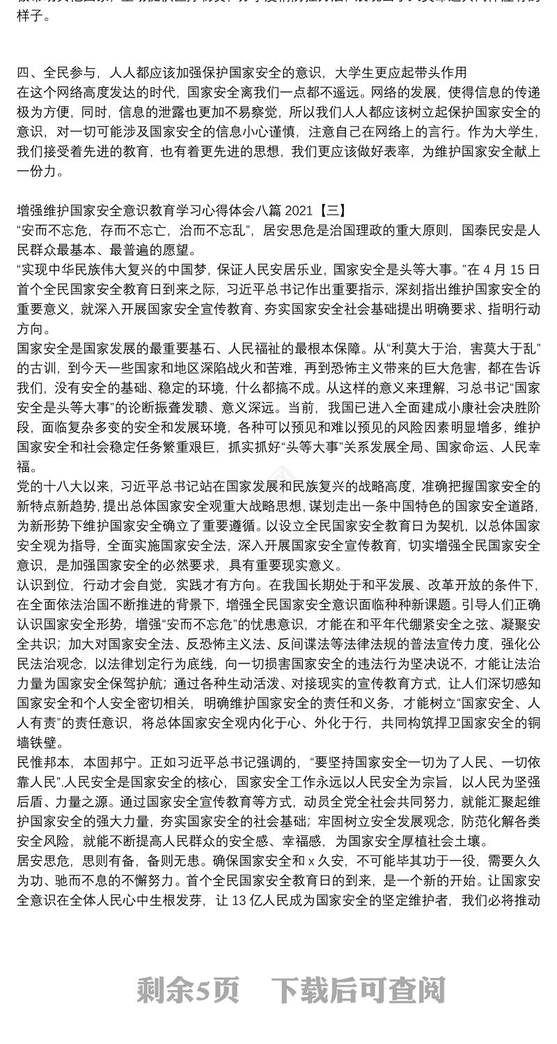 增強維護國家安全意識教育學習心得體會八篇2021 Array