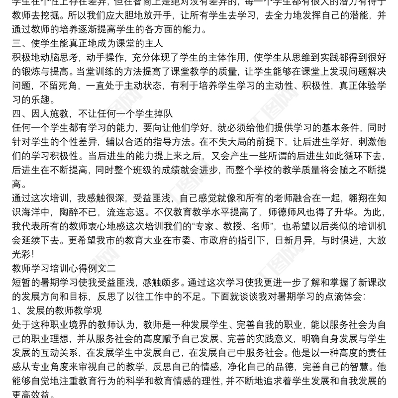 教師學(xué)習(xí)培訓(xùn)心得例文