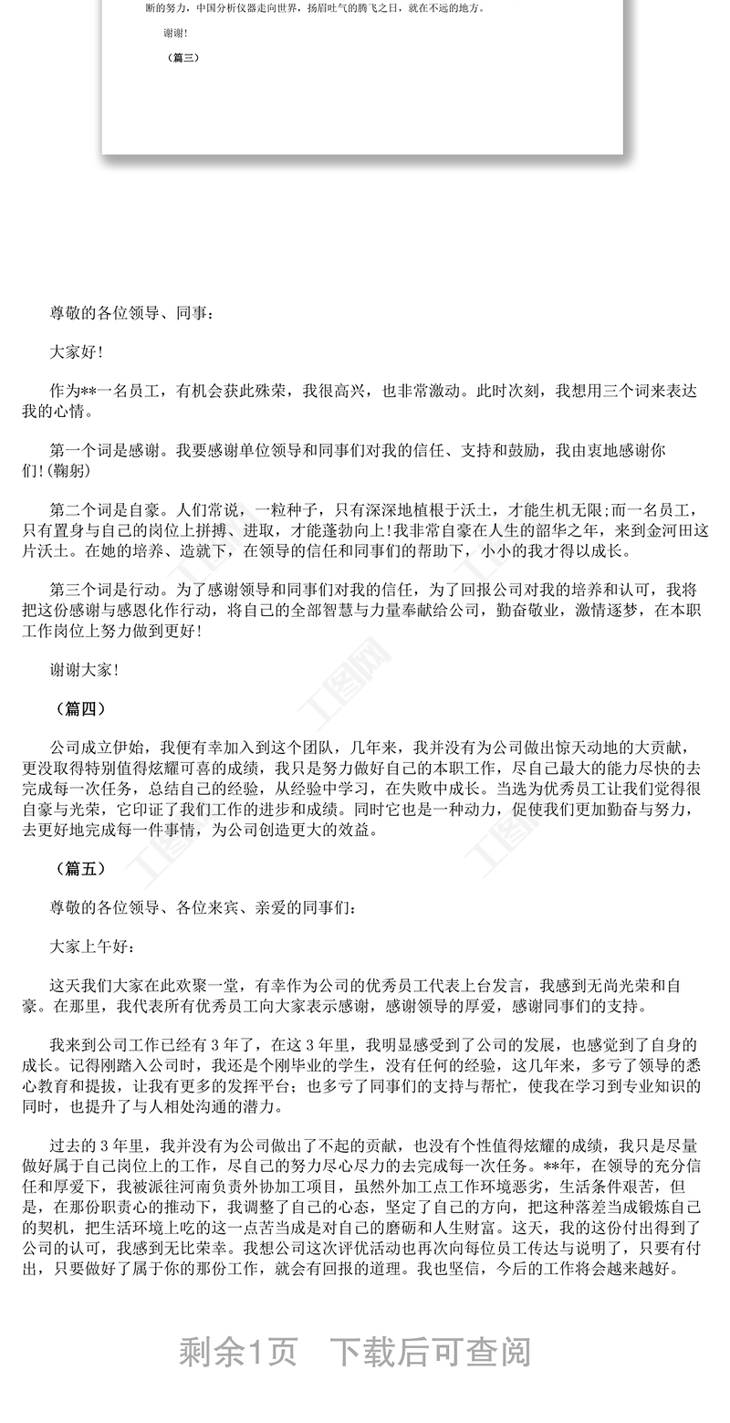 8篇優(yōu)秀員工發(fā)表獲獎感言精選例文包含