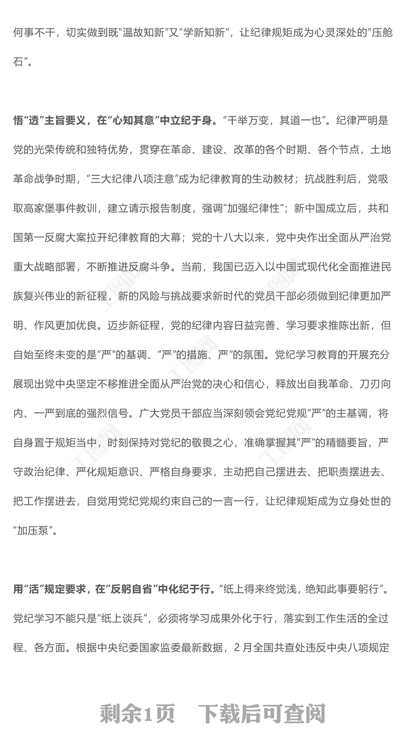 黨課講稿 > 黨紀學習要知于心立于身化于行PPT紅色黨政風黨紀學習教育心得體會課件(講稿).DOCX