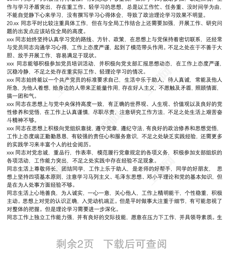 工圖網(wǎng)提供黨員互評(píng)50個(gè)缺點(diǎn)3篇最新供會(huì)員免費(fèi)下載。更多精彩黨課PPT素材,盡在工圖網(wǎng)。