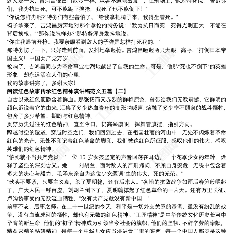 閱讀紅色故事傳承紅色精神演講稿范文五篇 Array