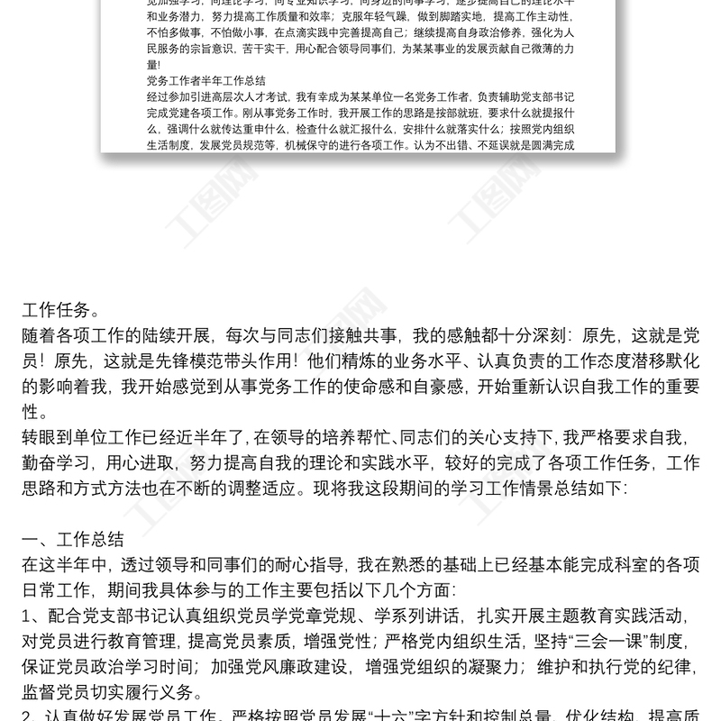 工圖網(wǎng)提供黨務(wù)工作者半年工作總結(jié)供會員免費(fèi)下載。更多精彩黨課PPT素材,盡在工圖網(wǎng)。
