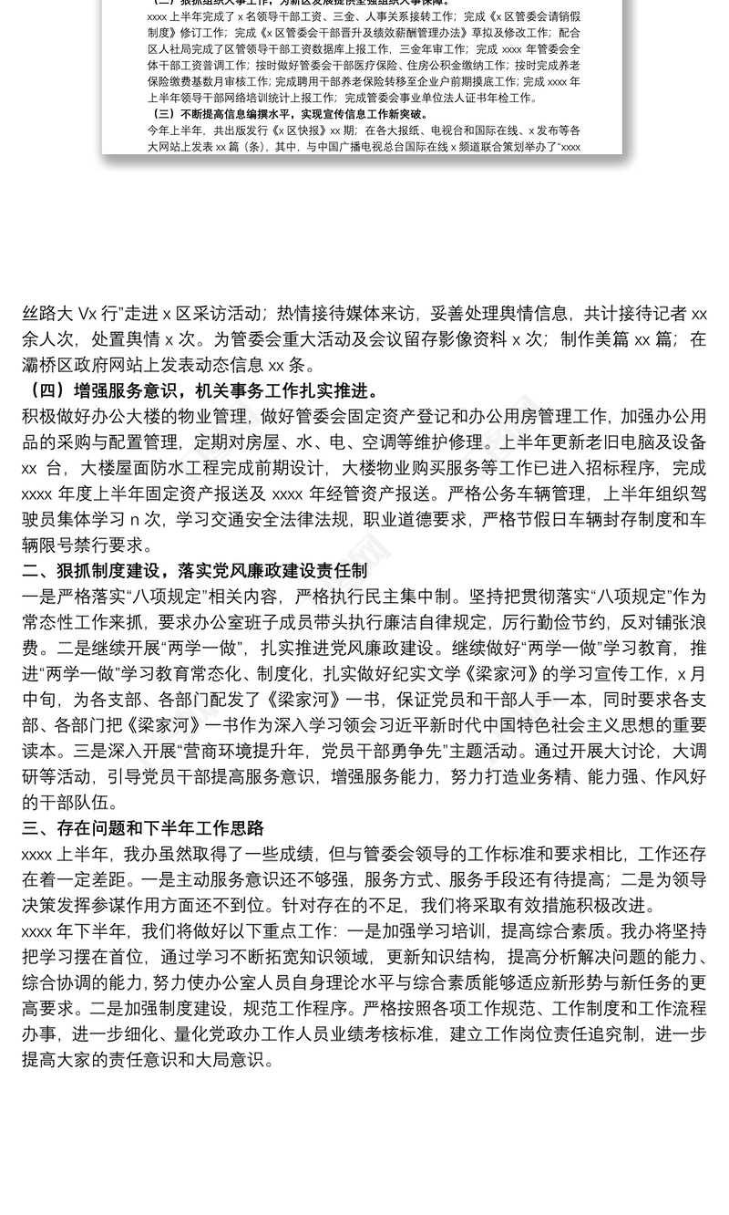 2021管委會(huì)黨政辦公室20xx年上半年工作總結(jié)和下半年工作計(jì)劃