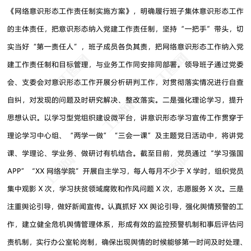 2022黨員領(lǐng)導(dǎo)干部網(wǎng)絡(luò)意識形態(tài)工作教育培訓(xùn)工作方案2022走讀式談話安全自查自糾報告2021年交通執(zhí)法個人自查自糾報告2022市場監(jiān)管涉糧問題自查自糾報告2022銀行紀(jì)檢監(jiān)察工作意識形態(tài)工作報告2024養(yǎng)老工作意識形態(tài)工作總結(jié)2024武裝工作意識形態(tài)工作匯報2024縣工會意識形態(tài)工作總結(jié)2024市工會意識形態(tài)工作計劃2024意識形態(tài)工作人員表態(tài)2024意識形態(tài)工作要點好范文網(wǎng)2024武裝工作意識形態(tài)工作總結(jié)2024意識形態(tài)工作督查制度范文2024科工局意識形態(tài)工作總結(jié)2024意識形態(tài)工作方案好范文網(wǎng)2024意識形態(tài)自查自糾評估報告
