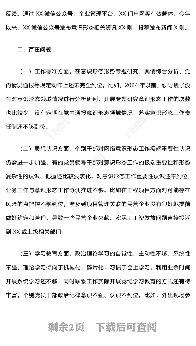 工圖網(wǎng)提供意識形態(tài)工作自查自糾報告范文供會員免費下載。更多精彩黨課PPT素材,盡在工圖網(wǎng)。