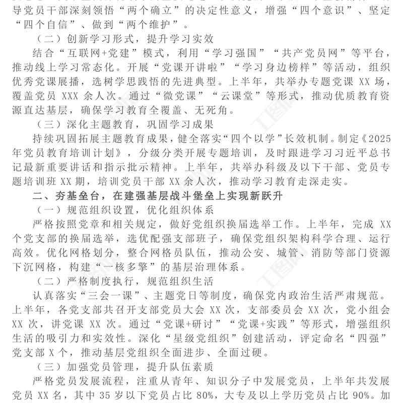 2025年上半年黨建工作情況總結(jié)PPT模板(講稿)