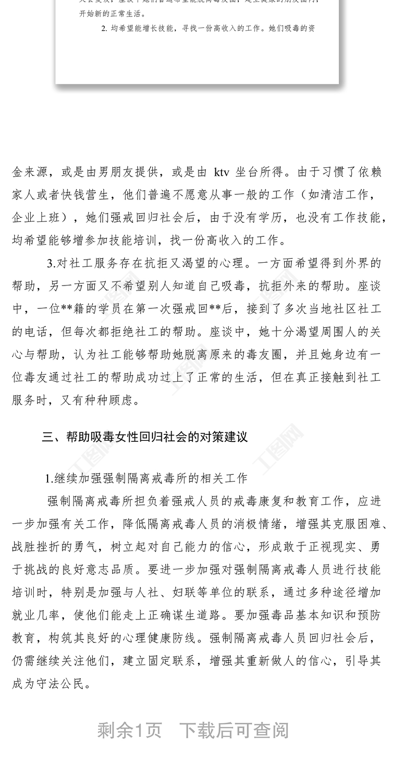 首頁 > WORD文檔 > 公文范文 > 2021女性戒毒人員回歸社會(huì)的生存情況調(diào)研.DOCX 【圖片、文字、動(dòng)畫均可編輯】
