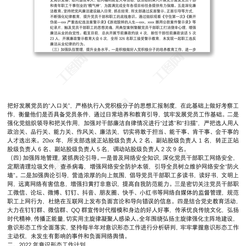 工圖網(wǎng)提供高速公路處黨總支意識(shí)形態(tài)工作總結(jié)暨2022年工作計(jì)劃報(bào)告供會(huì)員免費(fèi)下載。更多精彩黨課PPT素材,盡在工圖網(wǎng)。