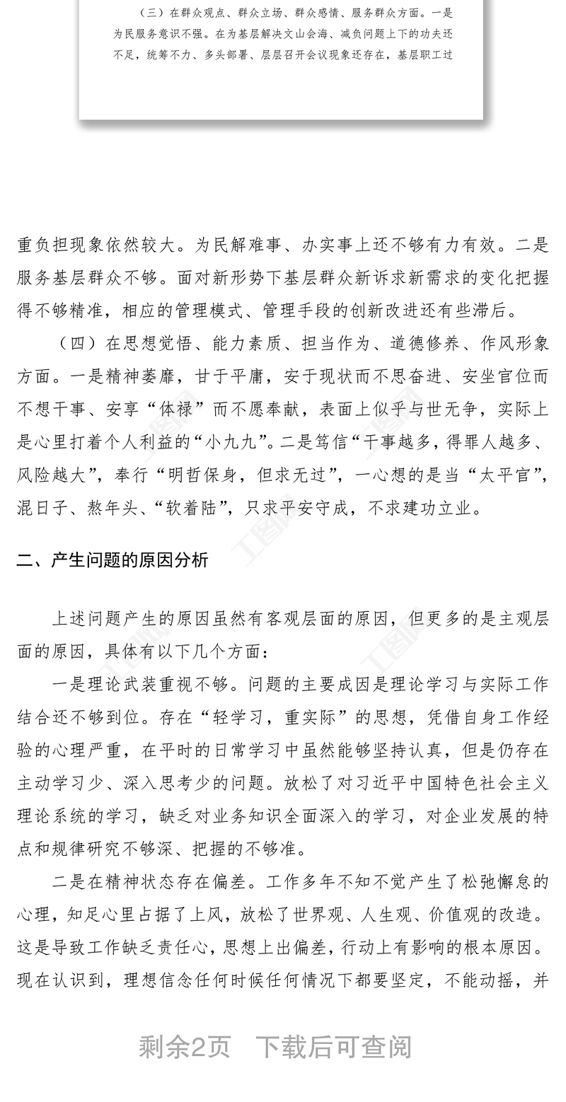 工圖網(wǎng)提供2021【對(duì)照檢查】領(lǐng)導(dǎo)班子成員第二批“不忘初心、牢記使命”主題教育專(zhuān)題民主生活會(huì)檢視剖析材料供會(huì)員免費(fèi)下載。更多精彩黨課PPT素材,盡在工圖網(wǎng)。
