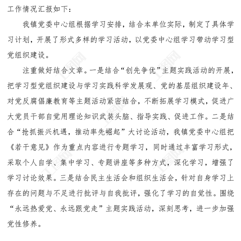 XXXX年鄉(xiāng)鎮(zhèn)黨委中心組學(xué)習(xí)情況匯報材料