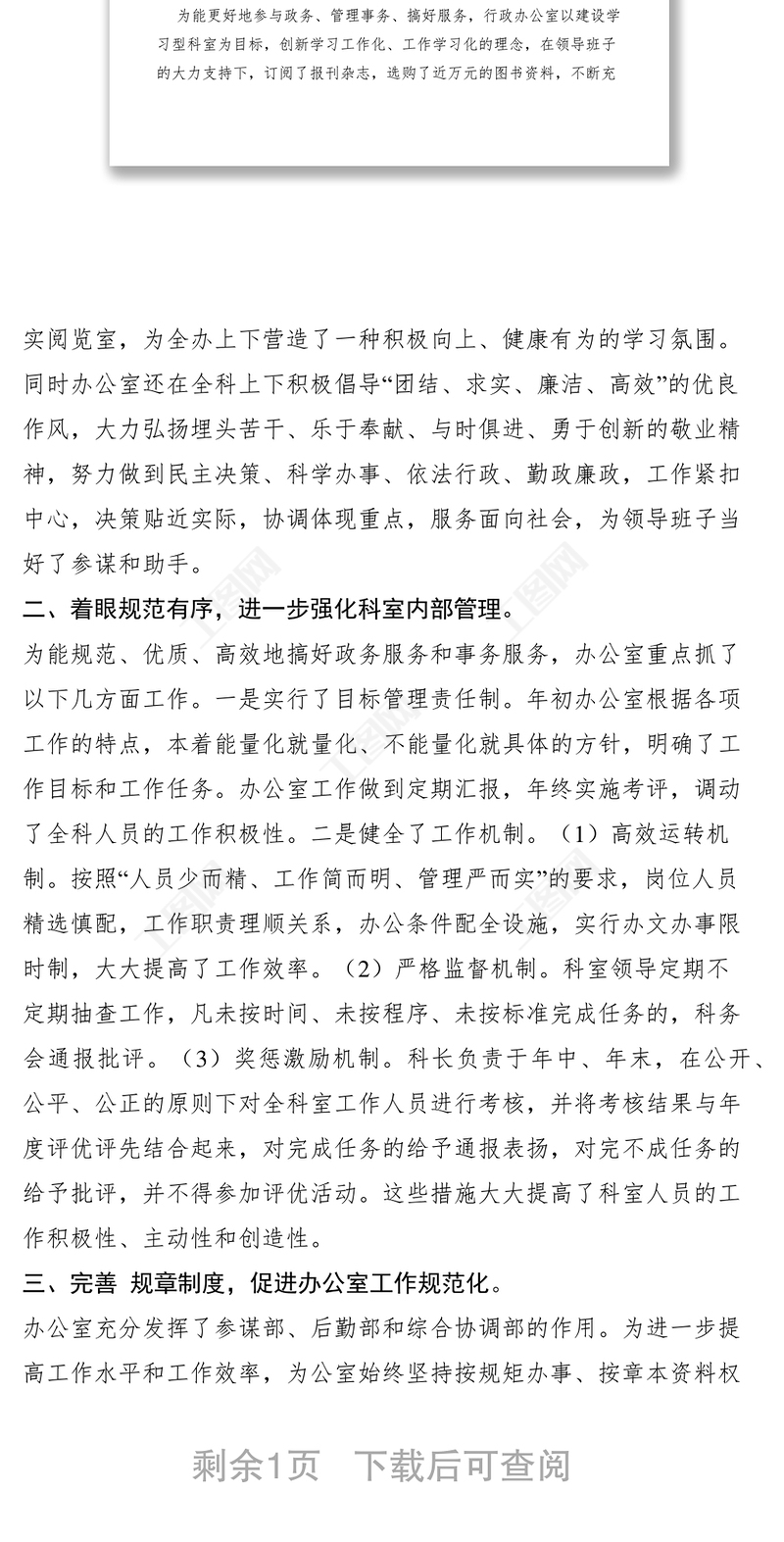 工圖網(wǎng)提供2021“先進(jìn)科室”―行政辦公室先進(jìn)事跡綜合材料供會(huì)員免費(fèi)下載。更多精彩黨課PPT素材,盡在工圖網(wǎng)。