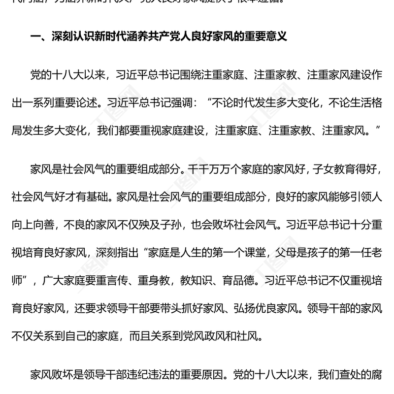 > 黨課講稿 > 涵養(yǎng)新時代共產(chǎn)黨人的良好家風(fēng)PPT大氣簡潔家風(fēng)建設(shè)黨課(講稿).DOCX 【圖片、文字、動畫均可編輯】