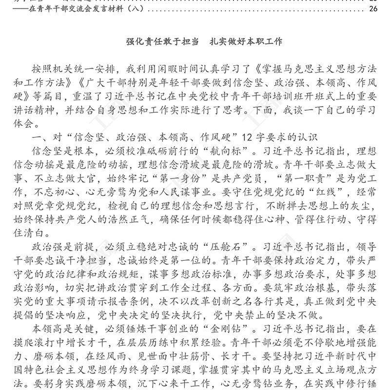 強(qiáng)化責(zé)任敢于擔(dān)當(dāng) 扎實(shí)做好本職工作(區(qū)人大機(jī)關(guān)科級(jí)及以下青年干部交流發(fā)言材料)包含