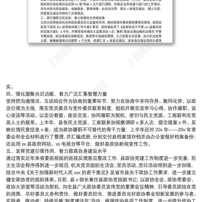 工圖網(wǎng)提供X縣政協(xié)2021年上半年工作總結(jié)及下半年工作安排供會(huì)員免費(fèi)下載。更多精彩黨課PPT素材,盡在工圖網(wǎng)。