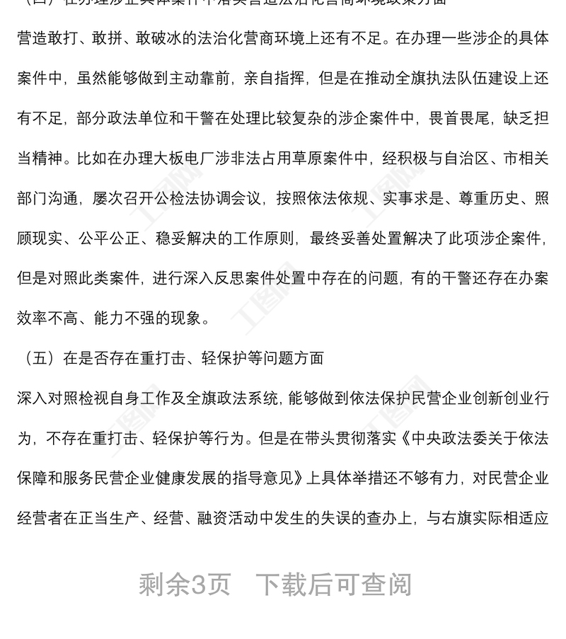 > 公文范文 > 政法機(jī)關(guān)“優(yōu)化法治化營商環(huán)境、服務(wù)保障高質(zhì)量發(fā)展”大討論活動對照檢視材料發(fā)言.DOCX 【圖片、文字、動畫均可編輯】