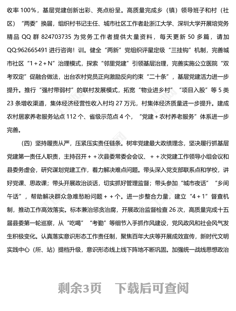 2022抓黨建工作述職報(bào)告2021年某國企黨委書記上半年黨建工作述職報(bào)告公安機(jī)關(guān)支部書記抓基層黨建工作述職報(bào)告2022年農(nóng)業(yè)銀行基層黨建工作述職報(bào)告2022年最新2022黨組織書記抓基層黨建工作問題整改方案2022融媒體中心黨建工作述職報(bào)告村委會(huì)抓基層黨建工作述職報(bào)告2022年最新保險(xiǎn)公司黨建工作述職報(bào)告20222022年社區(qū)書記黨建工作述職報(bào)告2022圖書館黨建工作述職報(bào)告2022公安機(jī)關(guān)基層黨建工作述職報(bào)告2022黨支部書記基層黨建工作總結(jié)2022年人大黨建工作述職報(bào)告2022年小學(xué)黨建工作述職報(bào)告2022基層黨建工作述職報(bào)告述職評(píng)議會(huì)上點(diǎn)評(píng)2023抓基層黨建工作總結(jié)
