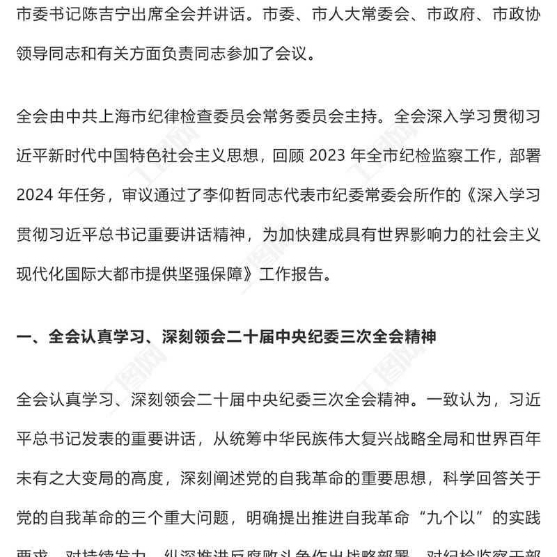 > 黨課講稿 > 上海市十二屆市紀(jì)委三次全會(huì)決議PPT紅色精美回顧2023年紀(jì)檢監(jiān)察工作部署2024年任務(wù)課件(講稿).DOCX 【圖片、文字、動(dòng)畫均可編輯】