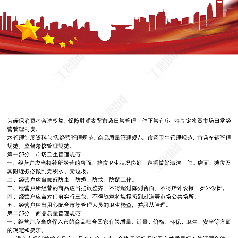 工圖網(wǎng)提供標(biāo)準(zhǔn)農(nóng)貿(mào)市場(chǎng)管理制度 3篇供會(huì)員免費(fèi)下載。更多精彩黨課PPT素材,盡在工圖網(wǎng)。