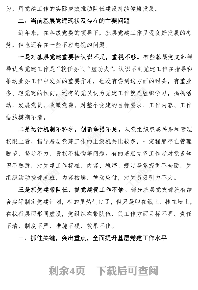 2022年學校書記抓基層黨建工作述職報告基層黨建工作調查研究記錄2021農業(yè)銀行基層黨建工作述職報告2022年最新2021年基層黨建示范點創(chuàng)建工作實施方案2022黨組織書記抓基層黨建工作問題整改方案2022公司關于推進基層黨建三基本建設與三基工作有機融合的實施方案基層黨風廉政建設黨課講稿村委會抓基層黨建工作述職報告2022年最新2022抓基層黨建和人才工作述職報告2022公安機關基層黨建工作述職報告2021基層黨建工作任務清單2022基層黨建工作發(fā)言稿2022基層黨建工作責任清單民政局2021基層黨建專項整治工作推進會發(fā)言材料2023中交基層黨建標桿創(chuàng)建總結2023創(chuàng)建基層黨建特色品牌計劃