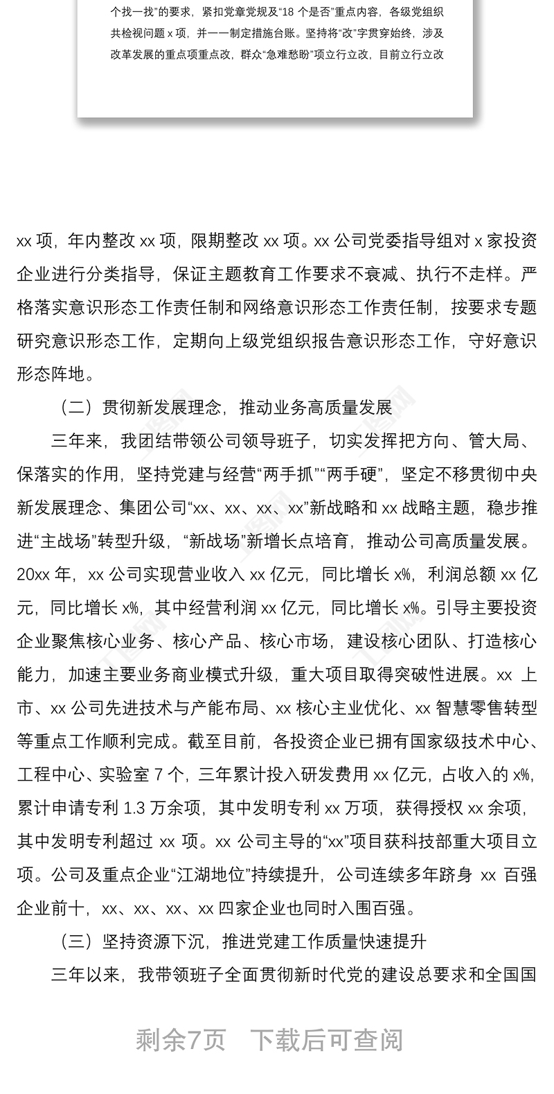 工圖網提供2021公司黨委書記三年工作述職述廉報告范文供會員免費下載。更多精彩黨課PPT素材,盡在工圖網。