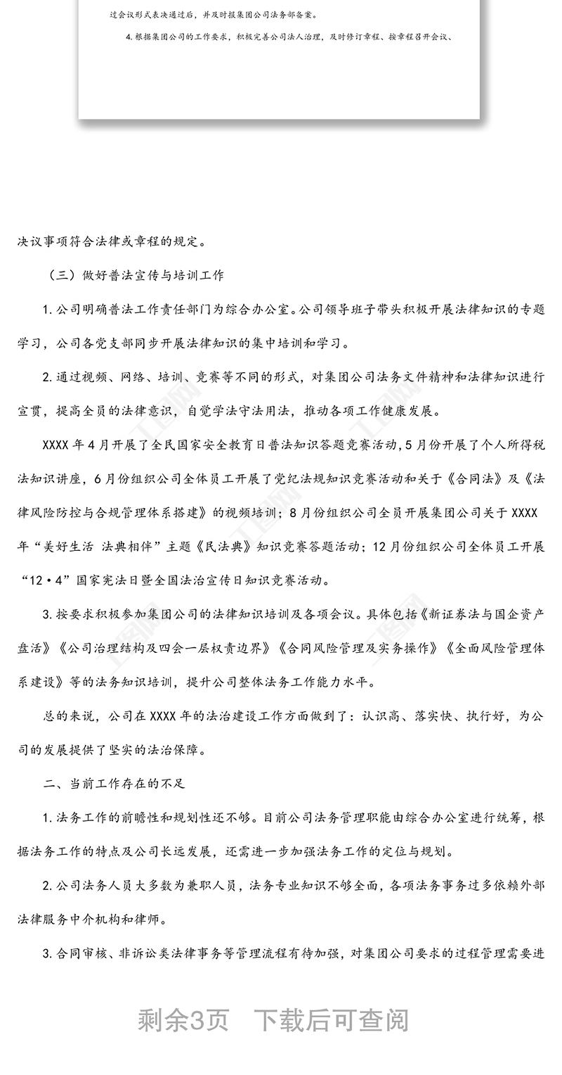 公司XX年法務(wù)工作總結(jié)及明年工作計(jì)劃