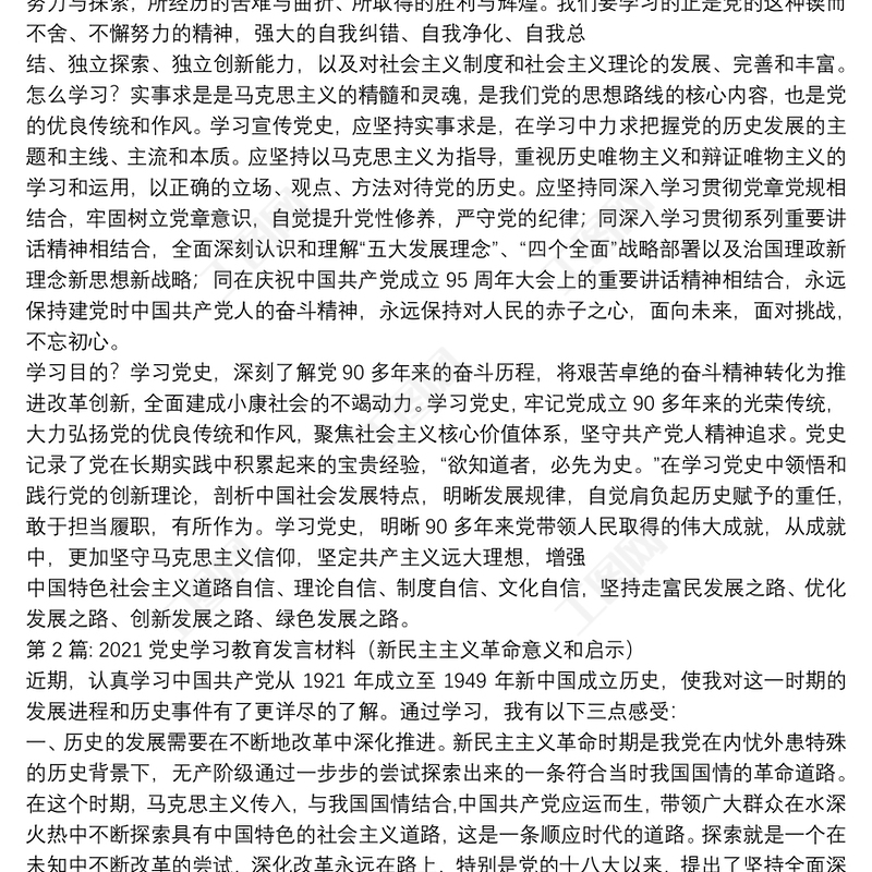 工圖網(wǎng)提供2021黨史學(xué)習(xí)教育發(fā)言材料(新民主主義革命意義和啟示)9篇供會員免費下載。更多精彩黨課PPT素材,盡在工圖網(wǎng)。