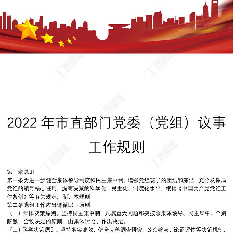 工圖網(wǎng)提供2022年市直部門黨委(黨組)議事工作規(guī)則供會員免費(fèi)下載。更多精彩黨課PPT素材,盡在工圖網(wǎng)。