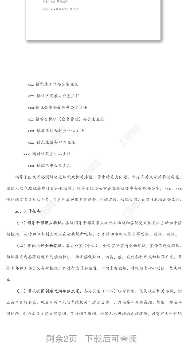 工圖網(wǎng)提供鎮(zhèn)2022年無煙黨政機關(guān)建設(shè)工作實施方案供會員免費下載。更多精彩黨課PPT素材,盡在工圖網(wǎng)。