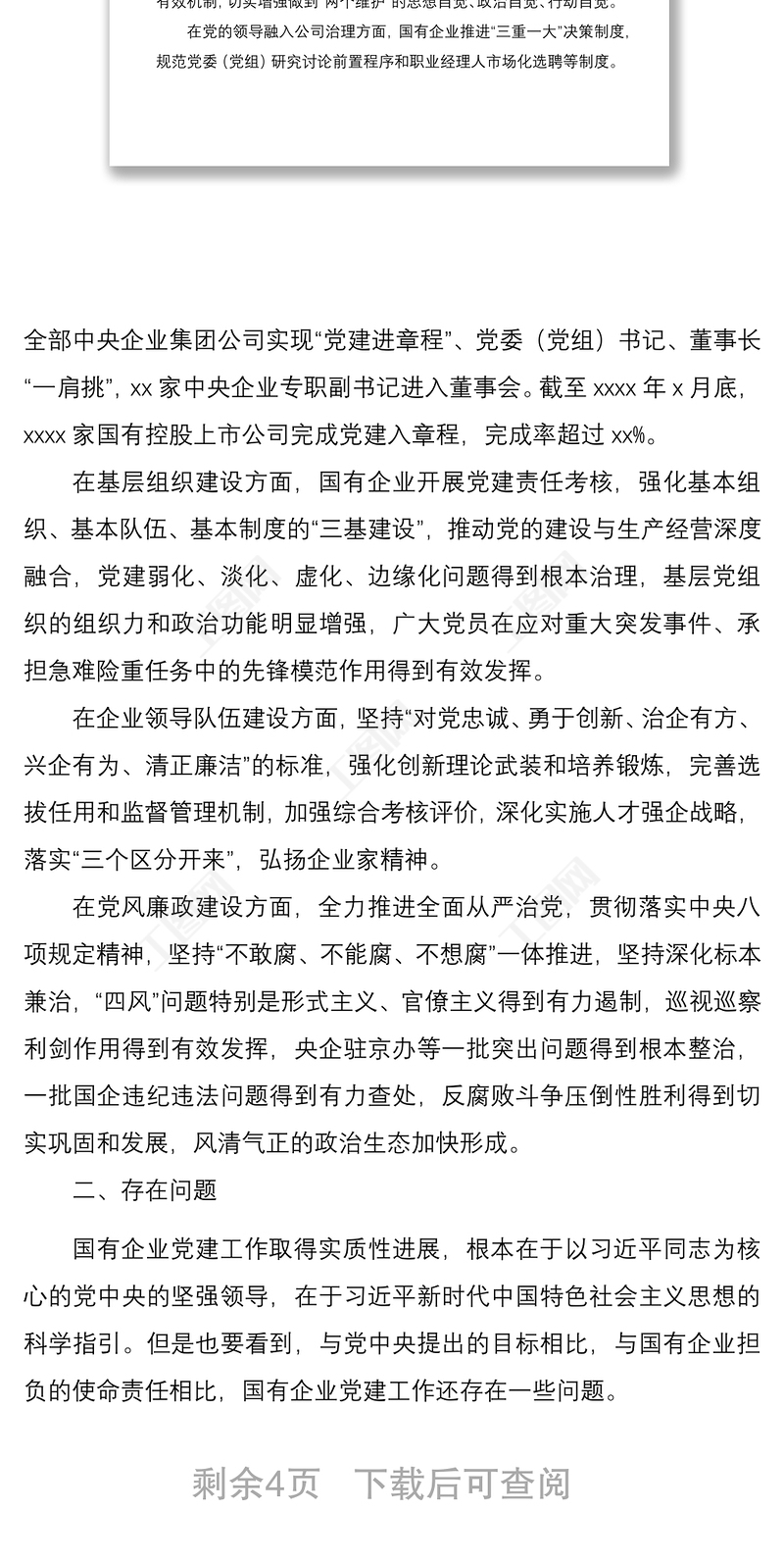 > 報告 > 2021新形勢下國有企業(yè)黨建工作主要問題調(diào)研報告(國有企業(yè)黨的建設(shè)工作會議五周年“回頭看”)(集團公司) (2).DOCX 【圖片、文字、動畫均可編輯】