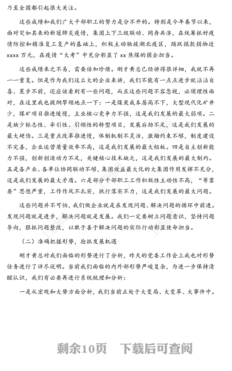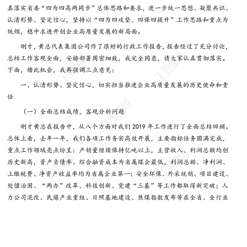 黨委書記、董事長在集團(tuán)公司職代會暨2020年工作會上的講話(集團(tuán)公司),職代會 Array