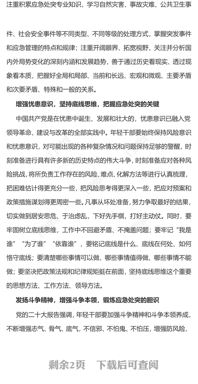 提升年輕干部應(yīng)急處突能力PPT大氣精美牢固樹立風(fēng)險意識勇?lián)?dāng)善作為微黨課(講稿) Array