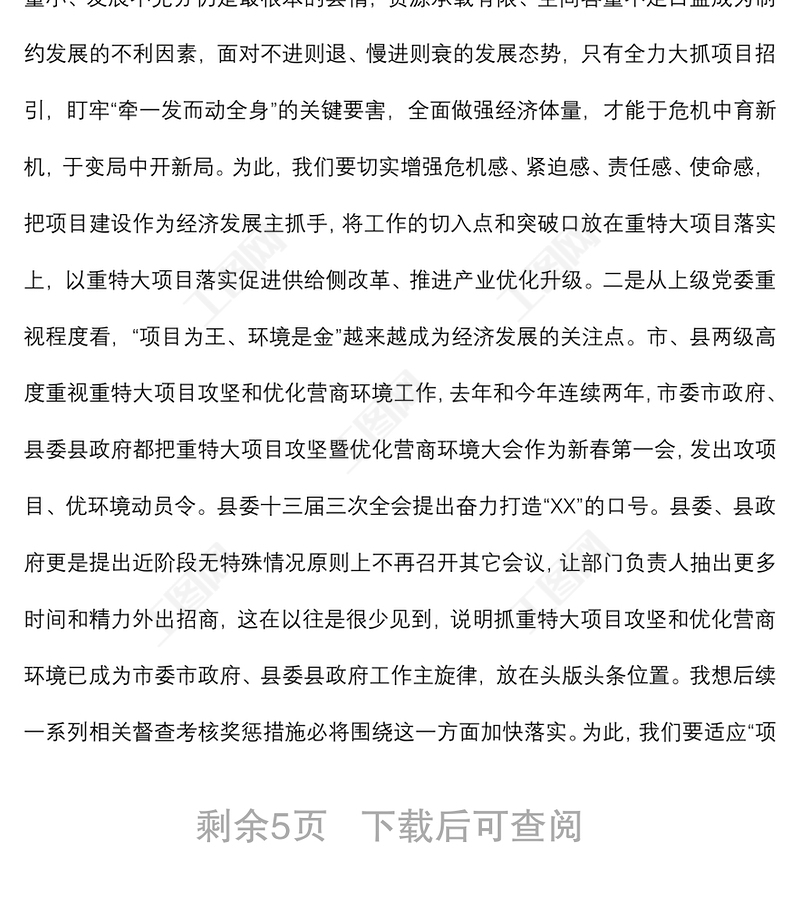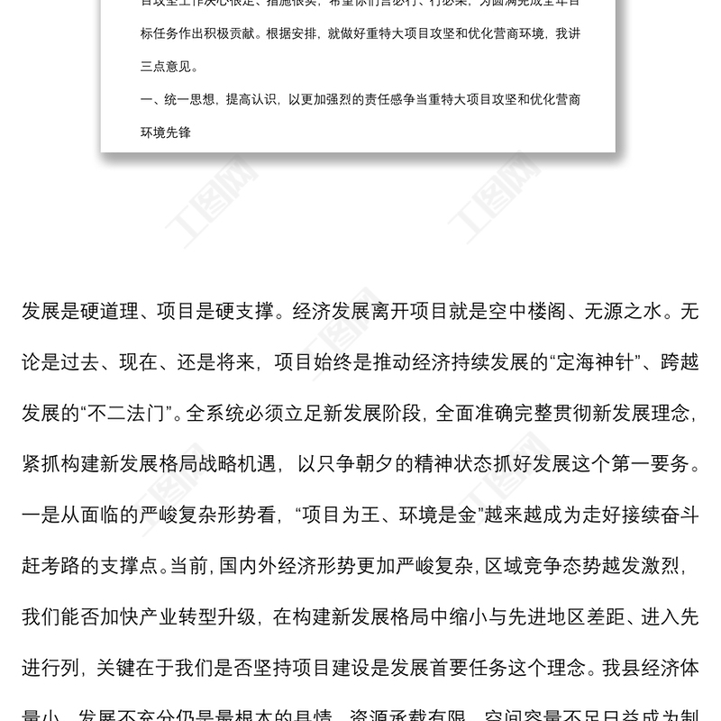 在重特大項目攻堅暨優(yōu)化營商環(huán)境大會上的講話