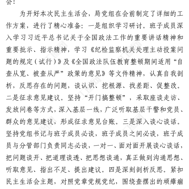 2022黨史學(xué)習(xí)教育專題專題民主生活會(huì)問(wèn)題整改落實(shí)情況2022組織生活會(huì)民主生活會(huì)談心談話提綱2022縣委領(lǐng)導(dǎo)防范化解重大風(fēng)險(xiǎn)做好安全生產(chǎn)工作專題民主生活會(huì)對(duì)照檢查材料2023新時(shí)代中國(guó)特色社會(huì)主義思想專題民主生活會(huì)議記錄2023新時(shí)代中國(guó)特色社會(huì)主義思想專題民主生活會(huì)上講話2023新時(shí)代中國(guó)特色社會(huì)主義思想專題民主生活會(huì)通知2023新時(shí)代中國(guó)特色社會(huì)主義思想專題民主生活會(huì)對(duì)照檢查2023新時(shí)代中國(guó)特色社會(huì)主義思想專題民主生活會(huì)會(huì)議記錄2023新時(shí)代中國(guó)特色社會(huì)主義思想專題民主生活會(huì)情況報(bào)告2023學(xué)校新時(shí)代中國(guó)特色社會(huì)主義思想專題民主生活會(huì)2023新時(shí)代中國(guó)特色社會(huì)主義思想專題民主生活會(huì)上的講話2023新時(shí)代中國(guó)特色社會(huì)主義思想開(kāi)好專題民主生活會(huì)2023公安個(gè)人新時(shí)代中國(guó)特色社會(huì)主義思想民主生活會(huì)