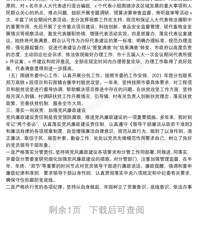 工圖網(wǎng)提供市人大常委會(huì)副主任2021年度述責(zé)述廉報(bào)告供會(huì)員免費(fèi)下載。更多精彩黨課PPT素材,盡在工圖網(wǎng)。