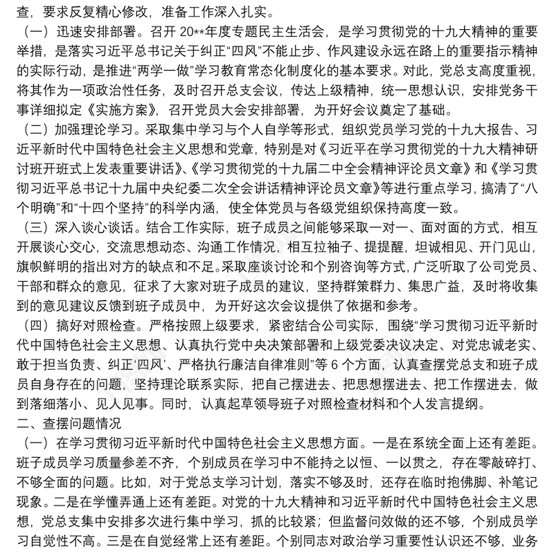專題民主生活會(huì)和民主評(píng)議黨員情況報(bào)告