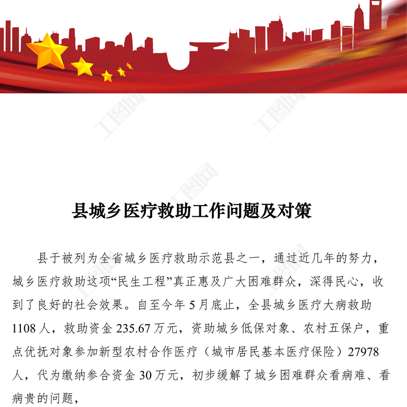 工圖網(wǎng)提供2021縣城鄉(xiāng)醫(yī)療救助工作問題及對策供會員免費下載。更多精彩黨課PPT素材,盡在工圖網(wǎng)。