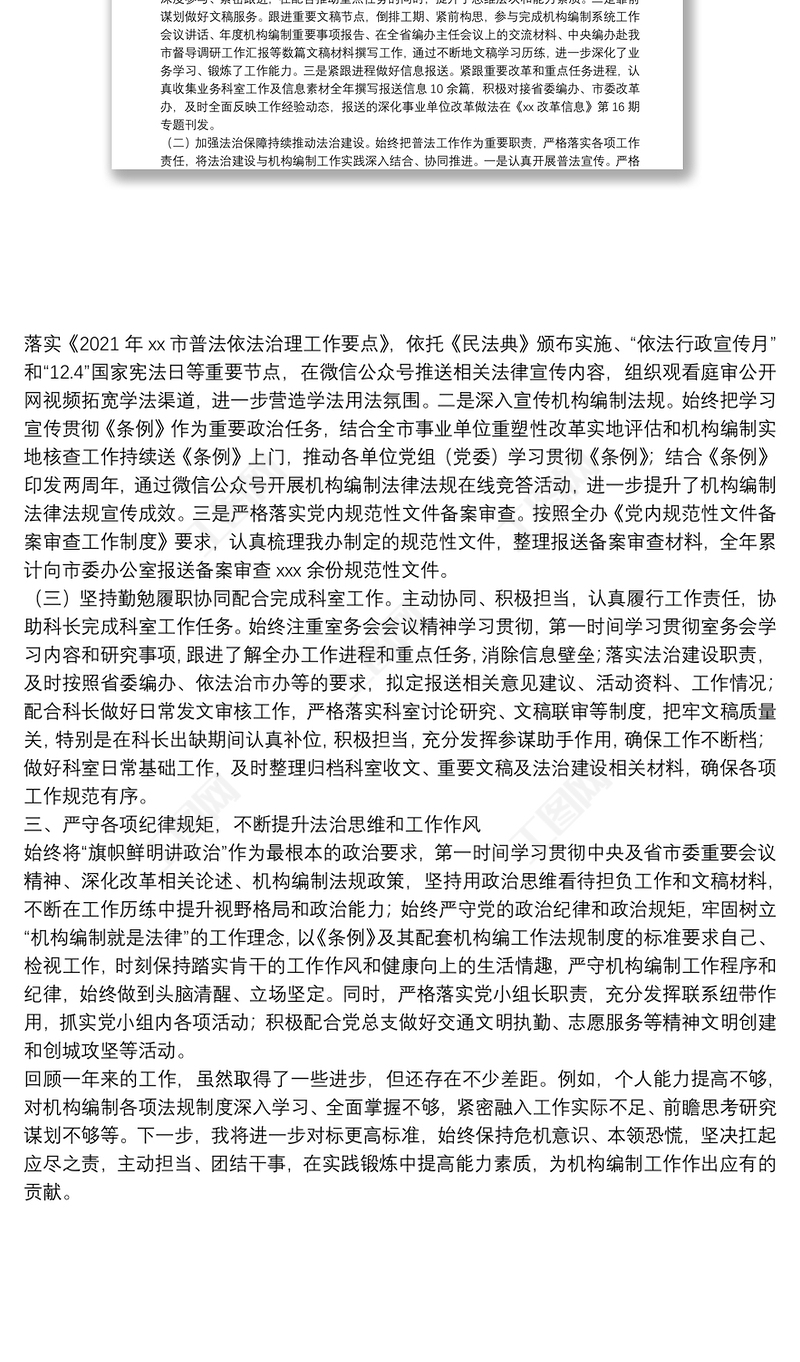 2021年度機關(guān)干部述職述廉報告