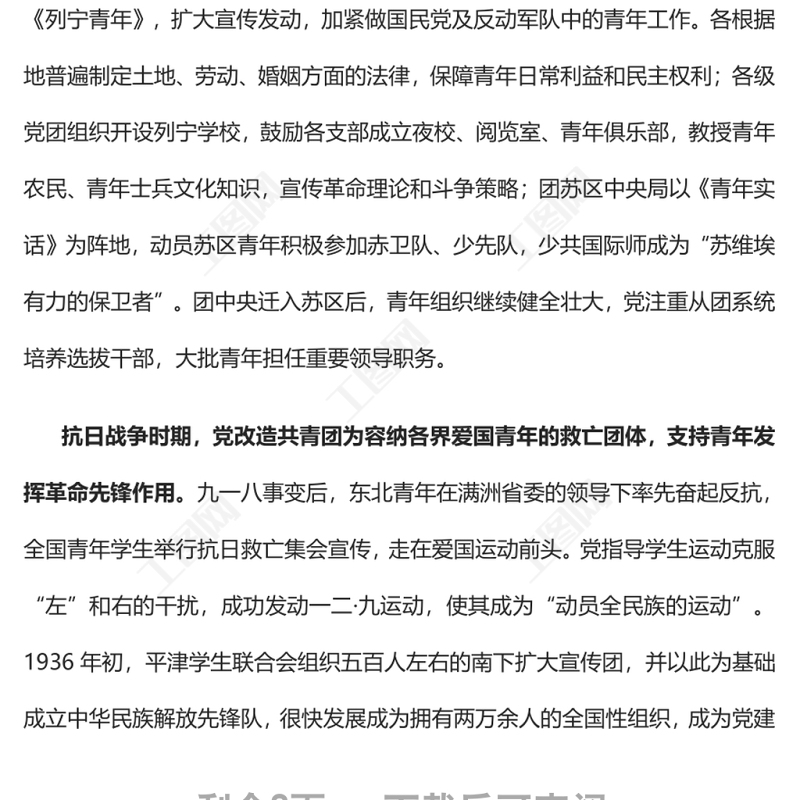 > 黨課講稿 > 建團(tuán)百年來黨領(lǐng)導(dǎo)青年工作的光輝歷程和基本經(jīng)驗(yàn)黨員干部學(xué)習(xí)教育專題.DOCX 【圖片、文字、動(dòng)畫均可編輯】