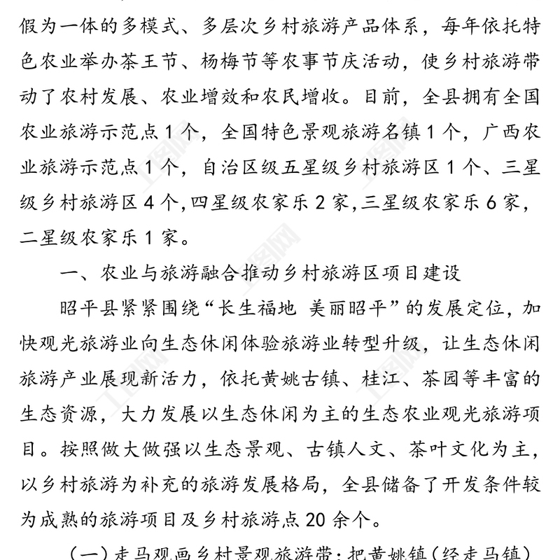 昭平縣農業(yè)與旅游業(yè)融合發(fā)展情況匯報,工作匯報,工作匯報,公文范例,領導述職報告,機關公文寫作 Array
